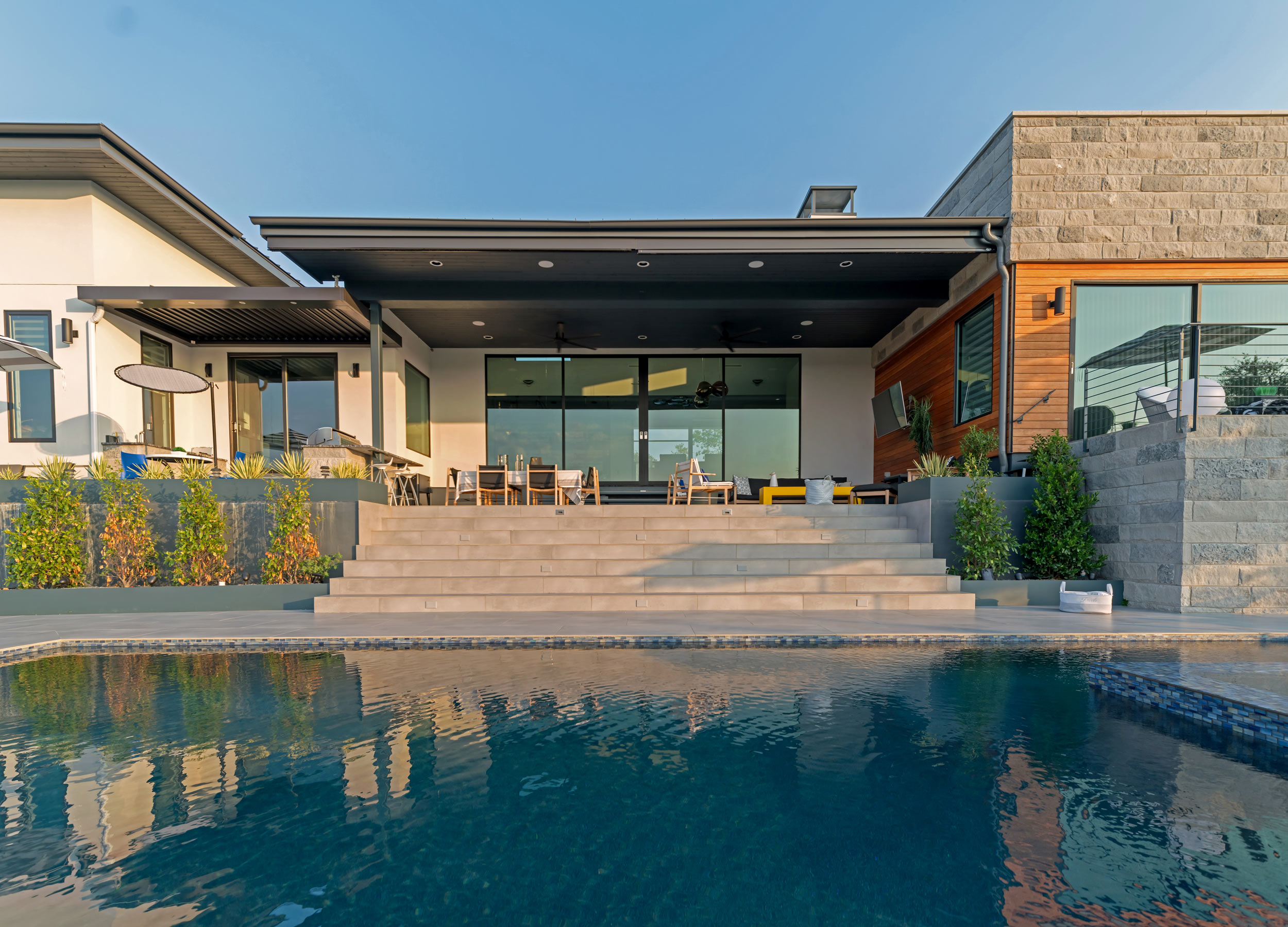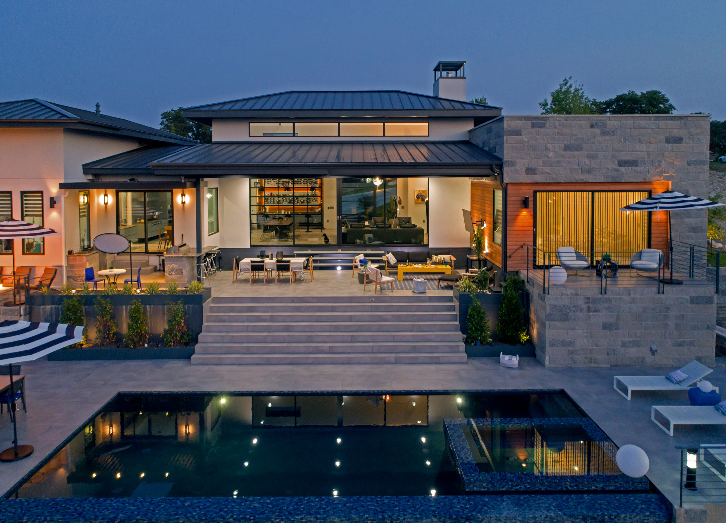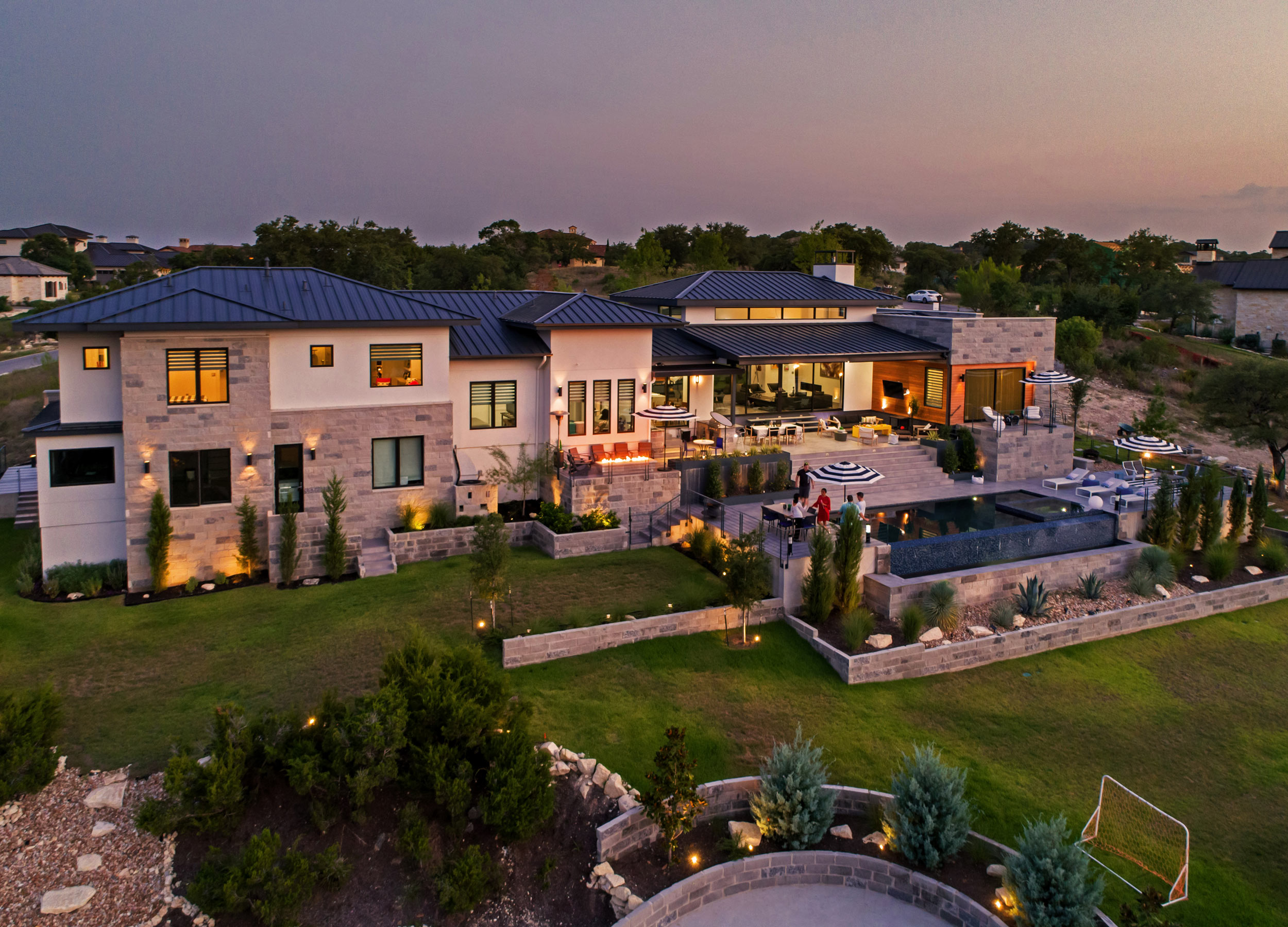 Nestled into the ridgeline with panoramic views overlooking the premiere Spanish Oaks Golf Club, this home terraces down to the fairway to best utilize the entire slope of the lot. The design gracefully marries traditional Italian villa and modern architecture to create a uniquely Texas Hill Country experience.